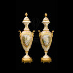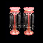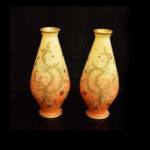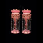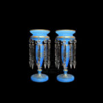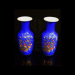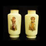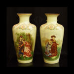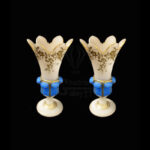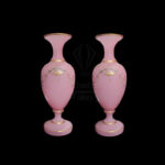 Manufacturing Opaline glass was established in Europe in nineteen century, this name was uesd in baccarat glass shop in France for the first time and became widespread in other French shops (1825-1870) and in America and England at the first decades of twentieth century at first, vases, pitchers, and delicate containers were made of this glass but due to rising demand, these objects painted with gilt and enamel designs and were ornamented with cool painting and glass strings.